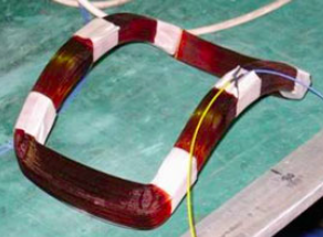 由此可見(jiàn),礦漿流量計(jì)正常運(yùn)行需要有穩(wěn)定的磁場(chǎng),而磁場(chǎng)正是靠傳感器線圈內(nèi)的 勵(lì)磁電流來(lái)產(chǎn)生的。勵(lì)磁線圈如圖2所示。
