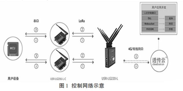 基于 LoRa 技術(shù)的無線流量計由控制,計量,通信,電源,存儲五個模塊組成。以污泥回流流量計為主體的計量模塊將采集到的供暖管道數(shù)據(jù)發(fā)送到通信模塊,基于 LoRa 技術(shù)的通信模塊將流量數(shù)據(jù)存儲并且發(fā)送到由管理人員監(jiān)控的控制模塊,管理人員通過控制模塊和通信模塊向流量計發(fā)送指示。電源模塊是無線流量計的能源中心,可以為流量計的其他模塊提供動力支持。流量計安裝完畢后可在小區(qū)內(nèi)形成控制網(wǎng)絡(luò),網(wǎng)絡(luò)示意圖如圖 1 所示。
