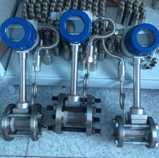 2、溫度補償一體型渦街流量計還帶有溫度傳感器,可以直接測量出飽和蒸汽的溫度并計算出壓力,從而顯示飽和蒸汽的質(zhì)量流量。