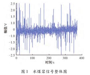 針對硅酸鈉流量計(jì)測量水煤漿時(shí)出現(xiàn)較大波動(dòng),甚至回零這一問題,特去某煤化工企業(yè)甲醇分公司進(jìn)行現(xiàn)場數(shù)據(jù)采集。該公司所使用的對置式四噴嘴氣化有4個(gè)噴嘴,噴嘴管道口徑為125mm,管中水煤漿流量基本穩(wěn)定在19m³/h(流速約為0.48m/s)。每條噴嘴煤漿線上安裝了3臺(tái)硅酸鈉流量計(jì),每臺(tái)硅酸鈉流量計(jì)由傳感器和變送器兩部分組成。選擇其中1條水煤漿管線上的1臺(tái)硅酸鈉流量計(jì)進(jìn)行數(shù)據(jù)采集,因?yàn)樵撆_(tái)硅酸鈉流量計(jì)測量結(jié)果波動(dòng)大,甚至出現(xiàn)回零的現(xiàn)象。將課題組研制的基于DSP的電磁流量變送器的信號線和勵(lì)磁線接到該電磁流量傳感器的電極和勵(lì)磁線圈上,組合成完整的硅酸鈉流量計(jì),進(jìn)行水煤漿數(shù)據(jù)采集。使用的電磁流量變送器是以TI公司DSP芯片TMS320F28335為核心,采用高頻勵(lì)磁方案,其硬件主要包括勵(lì)磁控制系統(tǒng)和信號采集處理系統(tǒng),具體的模塊有勵(lì)磁驅(qū)動(dòng)模塊、信號調(diào)理采集模塊、信號處理控制模塊、人機(jī)接口模塊、通信模塊及電源管理模塊。信號調(diào)理采集模塊中的調(diào)理電路對一次儀表輸出的信號進(jìn)行放大和濾波,截止頻率是2kHz,放大倍數(shù)約為230倍。通過NI公司USB-6216型號的數(shù)據(jù)采集卡進(jìn)行數(shù)據(jù)采集,把調(diào)理電路的輸出端連接到數(shù)據(jù)采集卡的一個(gè)差分輸入端,并設(shè)置數(shù)據(jù)采集卡工作在差分的測量模式,設(shè)置采集卡的采樣頻率為10kHz。采集多組水煤漿信號數(shù)據(jù),每組數(shù)據(jù)的時(shí)間長度為5min。
