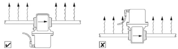 (1)在過熱的條件中使用時(比如在線清洗和在線消毒),強(qiáng)烈要求變送器裝在下面,這樣可以降低變送器部分過熱的風(fēng)險,如圖8。