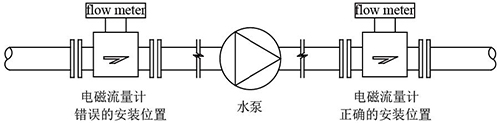 (1)流量計不得安裝在泵的抽吸側(cè),如圖2 所示。