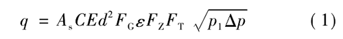 式中,、為標(biāo)準(zhǔn)狀態(tài)下天然氣體積流量,m; /s; A,為秒計(jì)量系數(shù),視采用計(jì)量單位而定,此處A=311 794 x 10 -6; C為流出系數(shù);E為漸近速度系數(shù);d為孔板直徑,mm; F}為相對密度系數(shù);。為可膨脹系數(shù);F:為超壓縮因子;F:為流動(dòng)溫度系數(shù);P,為孔板上游側(cè)取壓孔氣流絕對靜壓,Pa;0P為氣流流經(jīng)孔板時(shí)產(chǎn)生的壓差,Pao