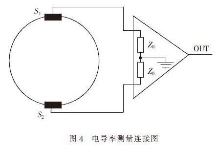 由井水流量計(jì)(兩電極)傳感器與信號放大器組成如圖4 所示