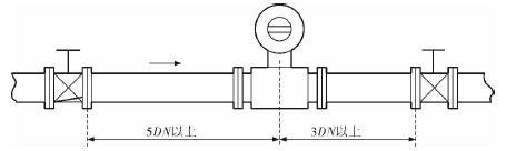 膠水管道流量表的安裝質(zhì)量對其測量結(jié)果的影響較大,因此在安裝時需要注意幾個問題。*先,膠水管道流量表直管段的選擇在配管時一定要按照要求進(jìn)行選擇,一般選擇流量計通徑與工藝管道通徑相同,即可滿足工程需要,而且安裝方便、壓力損失小,流量計直管段上游側(cè)的長度不少于5倍工藝管道直徑,下游側(cè)的長度不少于3倍工藝管道直徑(圖2)。但在流速太慢而又要求精度較高或需要變徑的應(yīng)用場合,可選擇通徑小于工藝管道通徑的流量計,以提高測量精度,此時流量計上、下游必須加裝異徑管,且進(jìn)口異徑管上游側(cè)應(yīng)有長于10倍工藝管道直徑的直管段,下游側(cè)應(yīng)有長于5倍工藝管道直徑的直管段(圖3)。