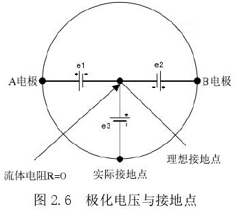 直流干擾主要來源于dn250污水流量計工作時出現(xiàn)的電化學(xué)噪聲。當電解質(zhì)和接液部件一旦接觸,電解質(zhì)中的正負離子將會即刻出現(xiàn)定向運動,即使沒有通電,電解質(zhì)中的正負離子會產(chǎn)生一個定向運動,此時在電解液中會形成一個明顯的電位差,出現(xiàn)的此種現(xiàn)象被稱為極化現(xiàn)象??蓮膱D 2.6 中進行觀察,兩個電極若是產(chǎn)生了大小相等,方向相反的電位e1=e 2時,兩個電極之間的電位差可視為零;當兩個電極之間的電位呈現(xiàn)出e1 ≠e2 的關(guān)系時則表示兩個電位之間存在一個明顯的電位差,產(chǎn)生的電位差之間則會出現(xiàn)相應(yīng)的電流從而形成極化電壓。此電壓與共模電壓3e 將會共同被轉(zhuǎn)換器前的放大器攝取,此時極有可能會出現(xiàn)放大器無法工作的情況,此種情況主要是由于極化電壓過大所導(dǎo)致,當極化電壓較大時將會把放大器的輸入端堵塞,此時放大器無法正常工作。為了能有效的避免發(fā)生此種情況需要控制降低在電磁場中所產(chǎn)生的極化電壓。