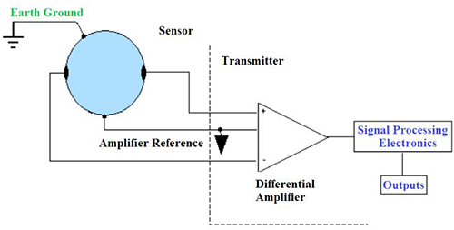 在典型的脈沖直流磁力計(jì)中,流量信號連接到差分放大器,該差分放大器與變送器外殼電氣隔離。接地過程為該差分放大器提供了穩(wěn)定的參考。