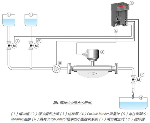 泵上的閥門和油箱出口由控制器操作。通過液體管道流量計后面的混合閥可實現(xiàn)混合操作以及配方精度。