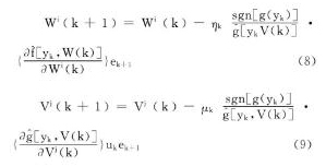 未知, 但其符號已知, 可用sgn[g (yk) ]代替g (yk) , 這樣就可以得到調(diào)整W (k) 和V (k) 的學(xué)習(xí)規(guī)則為