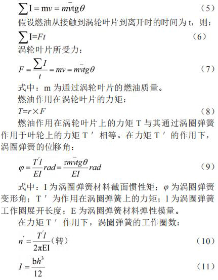 假設(shè)渦輪固定不動(dòng),燃油流過(guò)渦輪的葉片時(shí)將受到阻力,則當(dāng)燃油離開渦輪的葉片時(shí),將產(chǎn)生一個(gè)切向動(dòng)量 mv,這個(gè)動(dòng)量即為渦輪獲得沖量 。