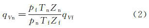 式中:qVf--工況條件下的體積流量,m3/h;qVn--標(biāo)準(zhǔn)狀態(tài)體積流量,m3/h;pf,pn--工作狀態(tài)、標(biāo)準(zhǔn)狀態(tài)流體絕對(duì)靜壓,MPa,pn=0.101325MPa;Tf,Tn--工況條件下、標(biāo)準(zhǔn)狀態(tài)流體熱力學(xué)溫度,K,Tn=293.15K;Zf,Zn--工況條件下、標(biāo)準(zhǔn)狀態(tài)氣體壓縮系數(shù)。
