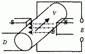 根據(jù)法拉*電磁感應(yīng)定律,即導(dǎo)電液體在磁場中切割磁力線運動時,導(dǎo)體中產(chǎn)生感應(yīng)電勢(見圖1),其感應(yīng)電勢的大小與磁感應(yīng)強度、流體做切割磁力線強度等因素成正比。