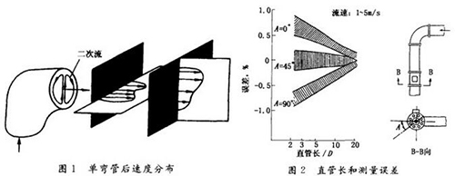 高溫電磁流量計流體流過彎管后,下游產(chǎn)生流速分布畸變,若是兩只鄰近相接的不同平面彎管,除流速分布畸變外還會有漩渦。這些現(xiàn)象要影響裝在下游的大部分類型流量儀表(除容積式等少數(shù)類型外)的測量值,因此通常要求在流量儀表安裝點之前有一定長度直管段,改善進入儀表的流動狀況。高溫電磁流量計受彎管影響較小,直管長度要求也遠低于節(jié)流差壓式、渦街式等其他流量儀表。但是當前高溫電磁流量計精度為測量值的0.5%,甚至0.2%~0.4,即使影響量較小,還是受到人們的關(guān)注。
