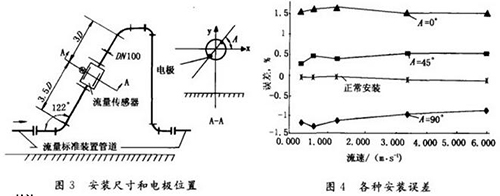 2)實驗證明電極軸線45。安裝比傳統(tǒng)水平安裝(A-o。)受彎管流動擾動影響有很大改善。