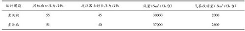 液體渦街流量計煮洗吹掃后,裝置運行期間無燃爆事故,且裝置運行的風量明顯提高,系統(tǒng)阻力明顯降低,投料量增加?,F將煮洗前后的運行數據對比如下: