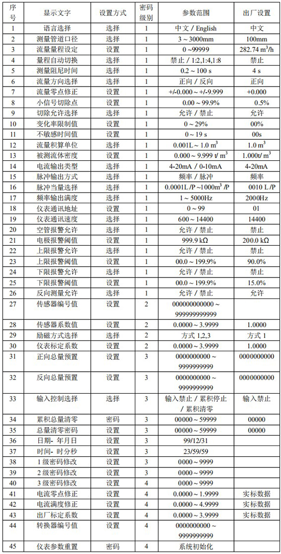 LDG 共有 45 個菜單項,使用儀表時,用戶應(yīng)根據(jù)具體情況設(shè)置或選擇各參數(shù)。LDG 菜單一覽表如下: