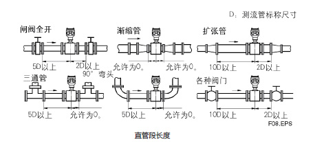 ⑹入口直管段≥DN×5長(zhǎng),出口直管段≥DN&×2長(zhǎng)(DN為流量計(jì)公稱通徑),從電極軸線開始測(cè)量。