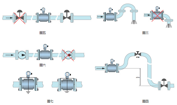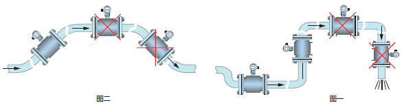 LDE電磁流量計(jì)對安裝點(diǎn)的上、下游工藝管有一定的要求,否則影響測量精度。