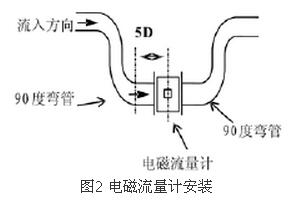 為獲得儀表測量精確度,在傳感器上游側(cè)的直管段長度不小于5D,下游側(cè)不小于3D(D為傳感器的名義直徑)。若在傳感器上游側(cè)有兩個以上的彎頭或其它阻流件,則前置直管段應(yīng)大于10D。