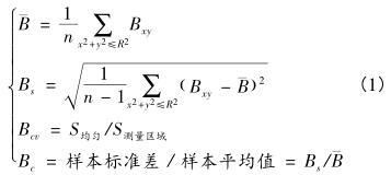 為了詳細(xì)的獲得井水流量計(jì)勵(lì)磁線圈及T型磁芯變化對(duì)流量計(jì)測量區(qū)域內(nèi)部磁場強(qiáng)度分布的影響情況,引入樣本平均值、樣本標(biāo)準(zhǔn)差、變異系數(shù)、磁場均勻度、感應(yīng)電勢值等磁場評(píng)價(jià)指標(biāo)分析傳感器勵(lì)磁線圈不同軸向長度時(shí)測量區(qū)域內(nèi)部磁場分布情況,如式(1)所示。式中,B為樣本平均值;B s為樣本標(biāo)準(zhǔn)差;B cv為樣本磁場均勻度;B c為樣本變異系數(shù)。在這4個(gè)磁場評(píng)價(jià)指標(biāo)中,樣本平均值越大越好,樣本標(biāo)準(zhǔn)差越小越好,磁場均勻度越大越好,變異系數(shù)越小越好。