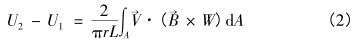 式中,U2-U1是兩電極的電勢差;A表示對(duì)所有空間積分;L為絕緣管道筒長一半;r為流量計(jì)截面管半徑;矢量珗B是導(dǎo)電流體的流速;B是磁感應(yīng)強(qiáng)度;W為矢量權(quán)重函數(shù),它是一個(gè)只由井水流量計(jì)本身結(jié)構(gòu)決定的量。由(2)式可知,只要確定了流體的流速V、磁感應(yīng)強(qiáng)度B、以及權(quán)重函數(shù)W,以及流量計(jì)管徑半徑,就可以求流量計(jì)的感應(yīng)電勢差。